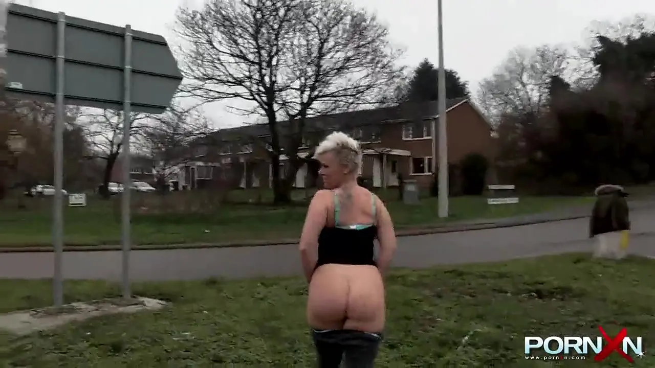 Bree, a gorgeous European mature woman with big tits and tattoos, enjoys public flashing by pissing outdoors in the UK. She teases onlookers with her busty figure as she pees, enjoying her fetish. Some lucky passerby gets splashed by her pee, creating a memorable moment.