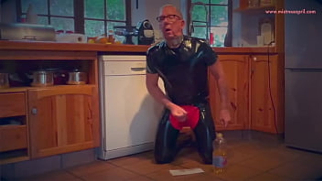Brunette MILF Mistress April humiliates her submissive with her big natural breasts and a painful caning. She makes him lick her boots before sucking his cock. He gets fisted while she rides him, making him submit further.