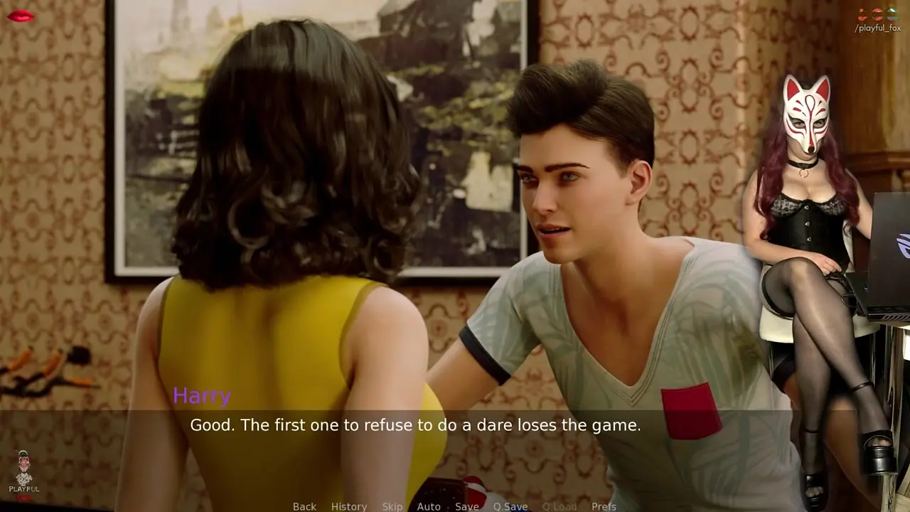 Playful fox gamer girl in stockings and see-through bra