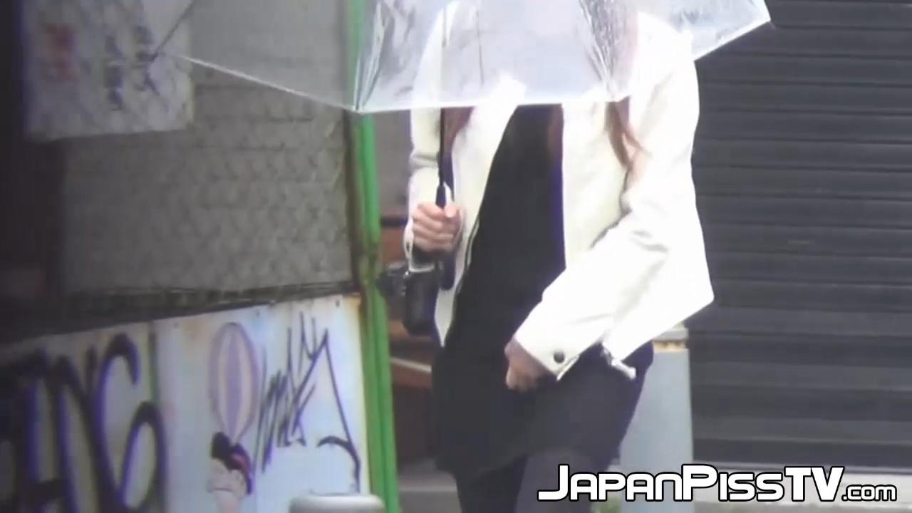 A dark-haired Japanese babe finds herself in a public restroom, struggling to hold in her pee. She finally gives in and urinates in her underwear, the sound of pissing filling the room. Voyeuristic onlookers get an eyeful of this sexy solo Japanese peeing fetish scene.