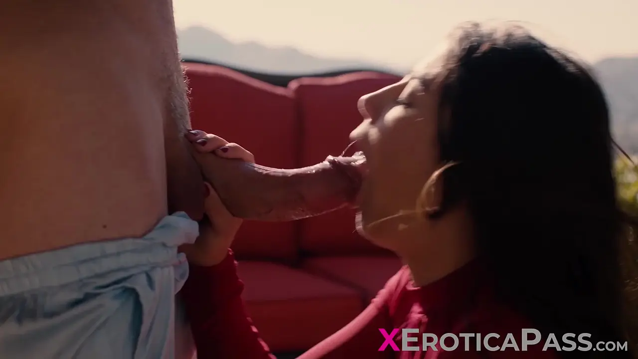 Dark-haired babe Kylie Rocket deepthroats and rides dong in outdoor hardcore sex