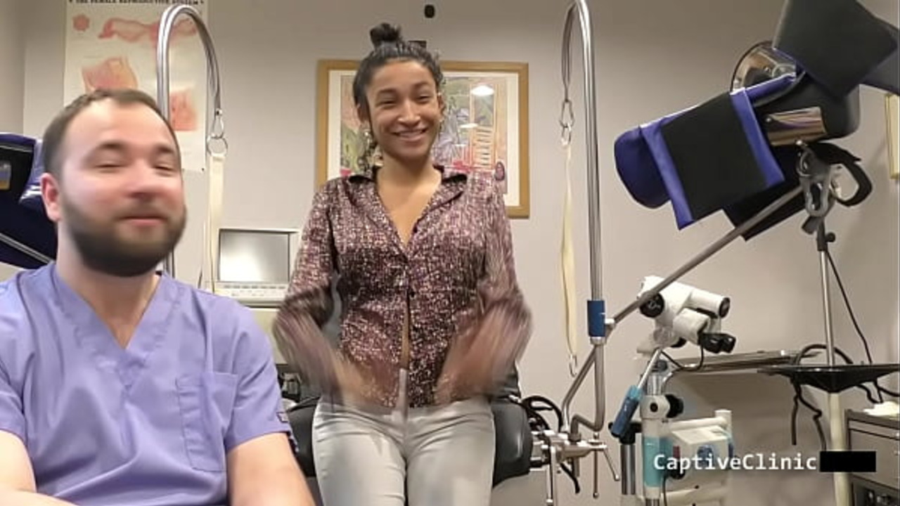 Curvy, black-haired Miss Mars uses her wide hips to hide a stash of illicit goods. She wears a tight latex outfit with gloves and a medical theme. Later, she reveals her shaved pussy hair as she gets a big tit massage from her muscular accomplice.