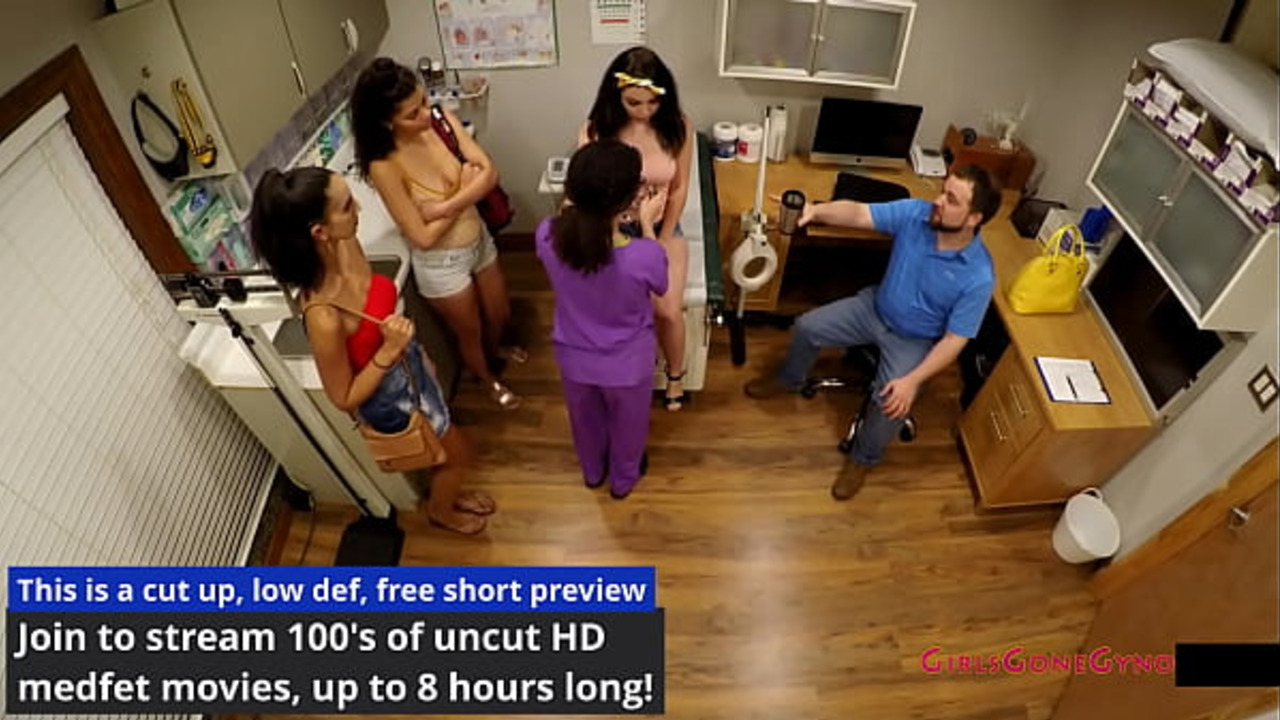 Two black-haired nurses, Angelica and Lenna, get caught in a lewd detention dilemma. The sexy teacher, Reina, humiliates them by exposing their massive natural tits and making them perform a humiliating medical fetish scene. They also show off their lactating breasts as they're forced to submit to their strict teacher.