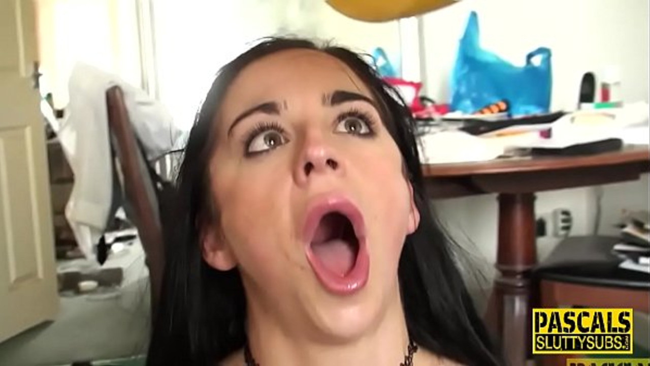 Brunette submissive with big tits in torn pantyhose receives her pussy pounded hard. She takes it deep and gags on his cock. He slams into her while she moans loudly, enjoying the roughness of their maledom encounter.