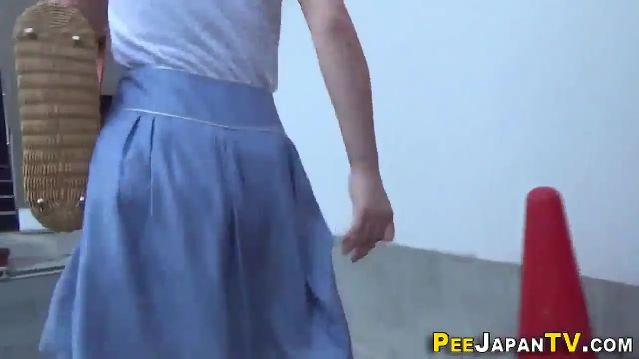 Two cute Japanese girls squat down to pee on the street, giving a clear view of their golden showers. Onlookers watch the voyeuristic scene, enjoying the public watersport. One of the girls starts to squirt her urine like a golden fountain.