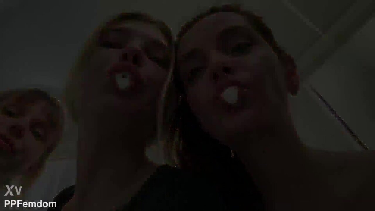 Three hot dommes take control in a POV spit-fetish-filled threesome. The blonde goddess spits on his face as her friends tease him with their dirty talk and domination. He's nothing but their loser slave, completely humiliated by the group femdom session.